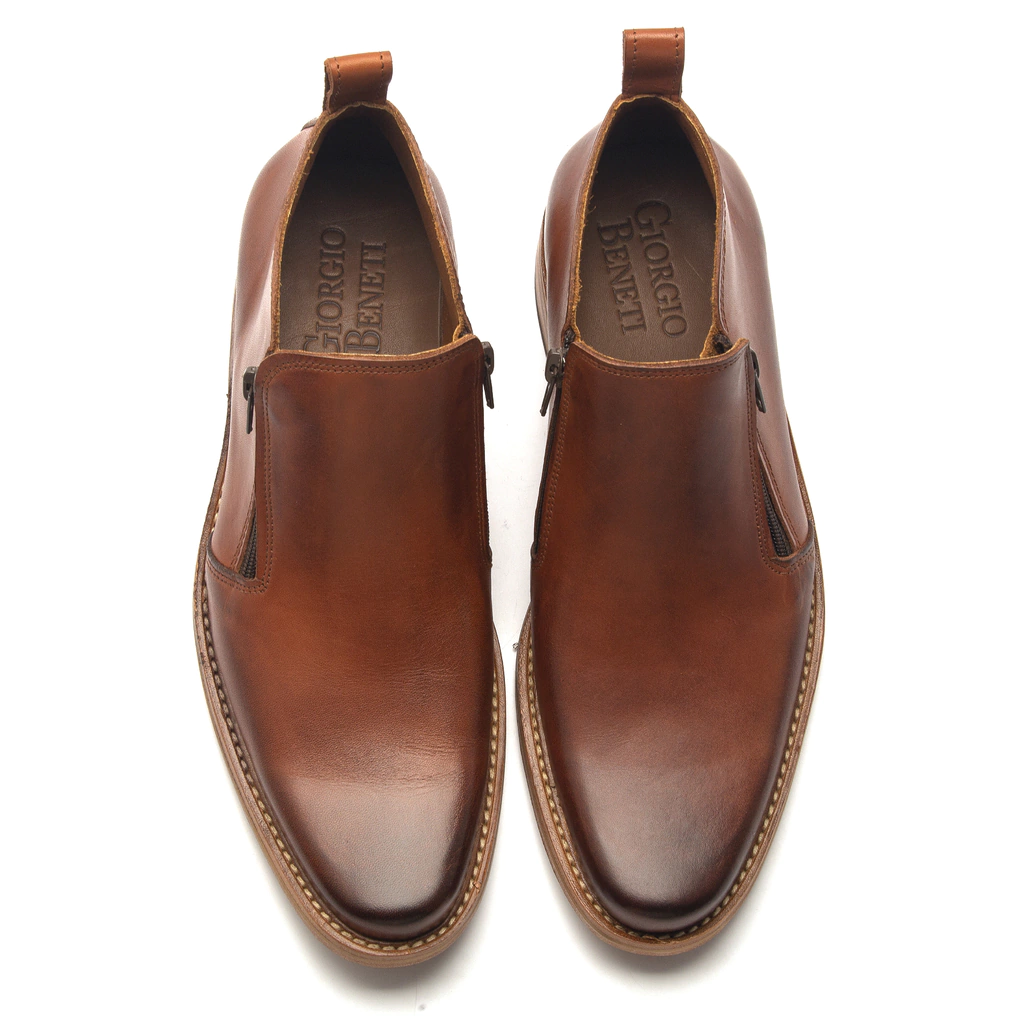 • Bota de Vestir con cierre, en fondo suela en color natural. Horma tomada al pie.