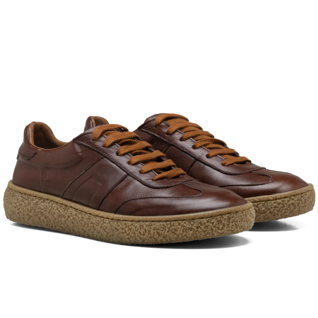 - Sneakers de cuero liso con detalles laterales