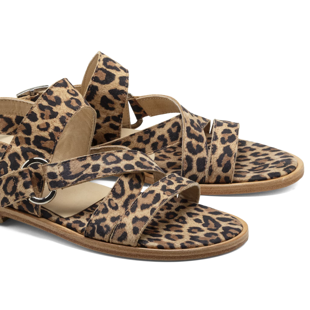 - Sandalia de cuero baja con pulsera tiras cruzadas