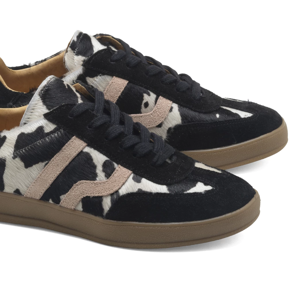 - Sneakers de cuero pelo estampa vaca blanca y negra . Forro de cuero vacuno