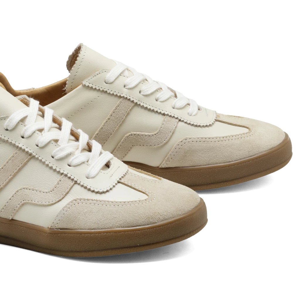 - Sneakers de cuero combinada con gamuza . Forro de cuero vacuno